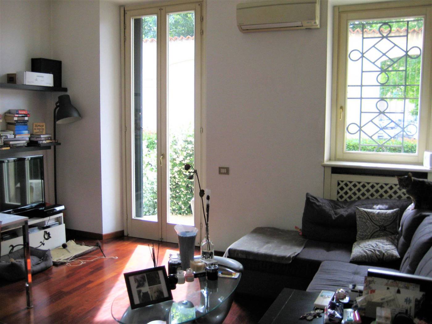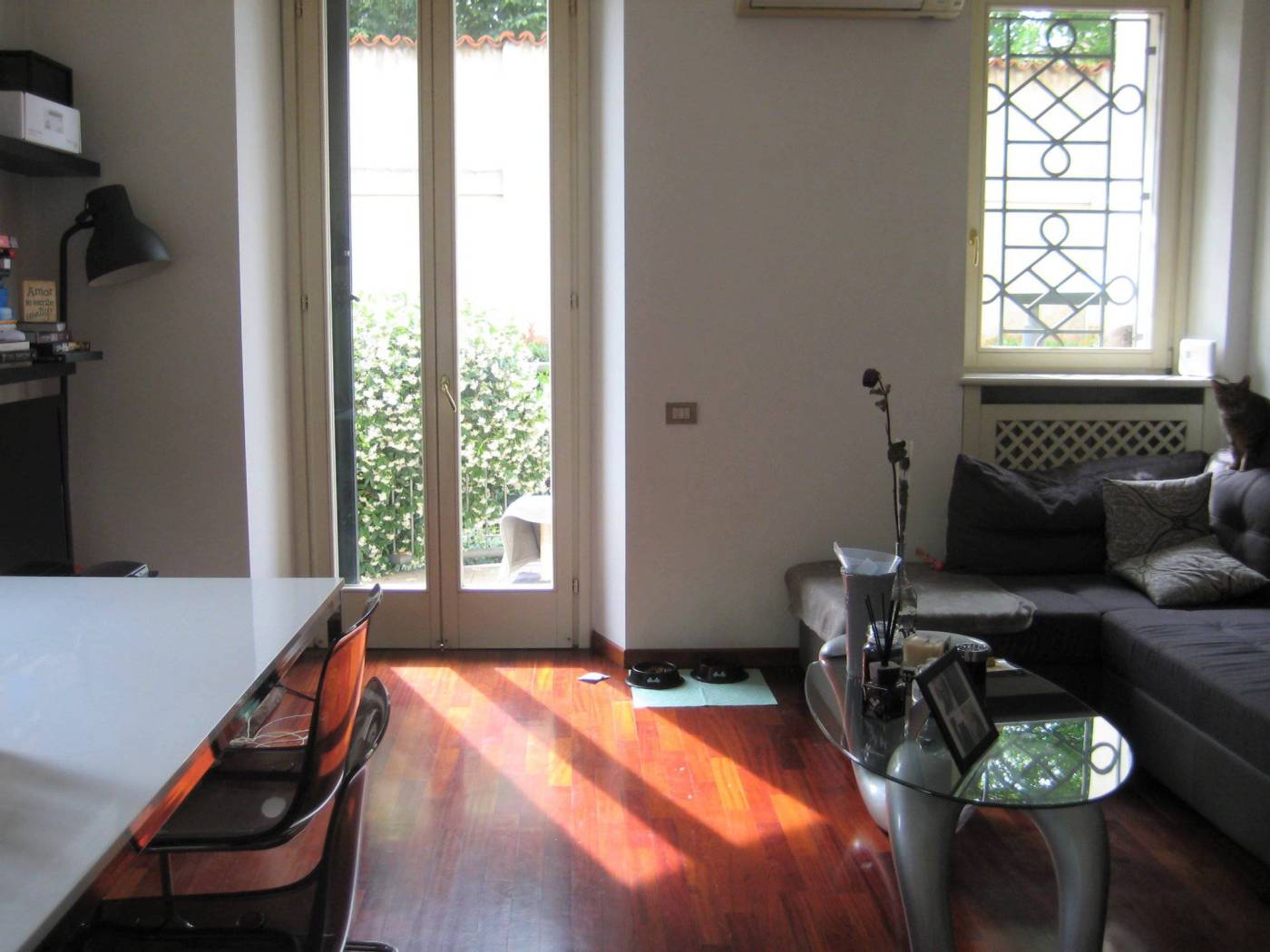 Monza in pieno centro storico a ridosso della zona pedonale in elegante e signorile contesto proponiamo ampio 2 locali composto da: soggiorno con accesso diretto a balcone vivibile con scala che conduce a piccolo giardino privato, cucina abitabile con locale lavanderia/ripostiglio, disimpegno con armadio su misura, camera matrimoniale e bagno. Aria condizionata in soggiorno, doppi vetri e persiane a scomparsa. Riscaldamento autonomo. Cantina. LIBERO SUBITO